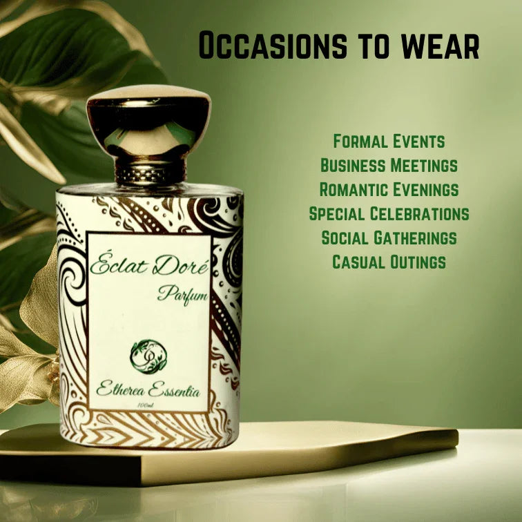 Éclat Doré is versatile and perfect for both daytime elegance and evening sophistication. It’s ideal for formal events, romantic outings, and even special celebrations, offering a timeless touch of luxury