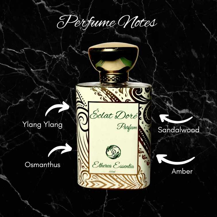 Éclat Doré opens with a sparkling blend of exotic ylang ylang and fresh neroli, awakening your senses with their vibrant and uplifting notes. As it evolves, a romantic heart of rose and intoxicating jasmine envelops you, with a soft touch of iris adding an elegant, powdery nuance. The scent deepens into a rich base of creamy sandalwood, warm vanilla, and a sweet embrace of balsamic amber, leaving a luxurious and lasting impression