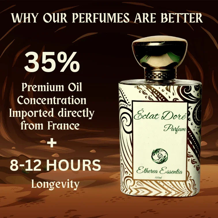 Éclat Doré embodies true luxury with its carefully crafted blend of floral sophistication and warm, grounding base notes. With a high concentration of pure essential oils, this perfume ensures long-lasting wear while maintaining a gentle touch on the skin. The infusion of timeless florals like rose and jasmine, paired with the richness of amber and oakmoss, creates a fragrance that exudes grace and elegance, perfect for those who appreciate refined beauty.