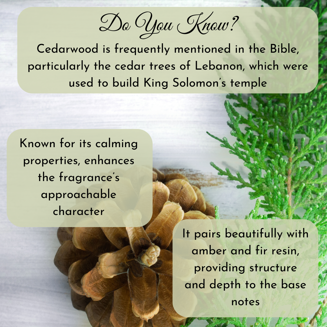 Elegante begins with a burst of rich saffron and jasmine before revealing a heart of deep ambergris and warm amberwood. The base lingers with notes of fir resin and cedar, leaving an unforgettable impression