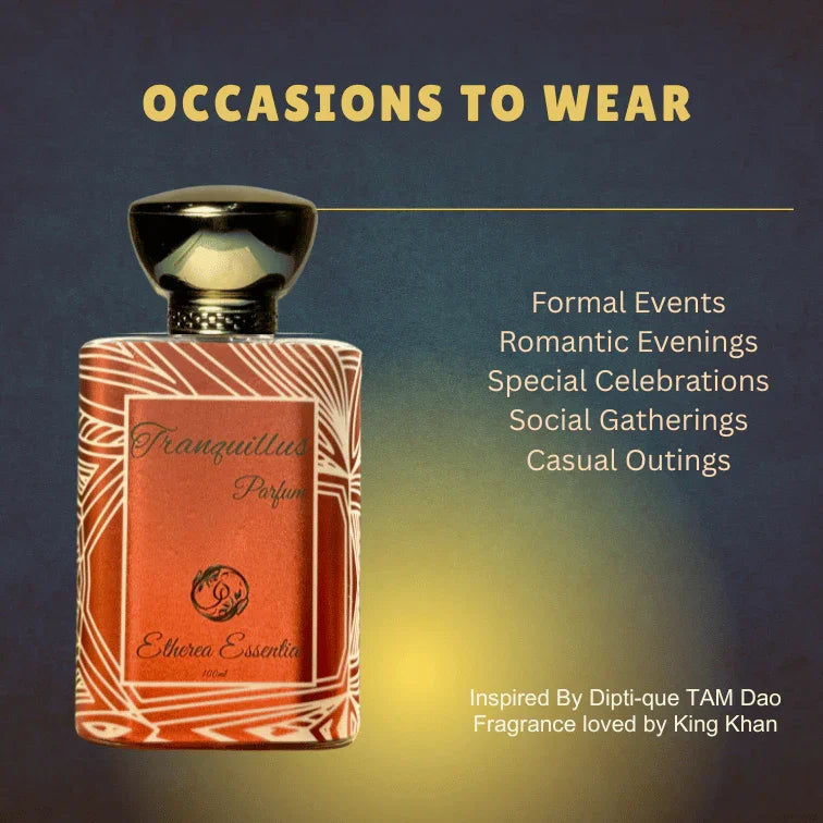 Tranquillus transforms every moment into a celebration of elegance and serenity. Whether it's a romantic evening filled with intimacy, a professional event where confidence shines, or vibrant parties that spark joy, this luxurious fragrance enhances each experience. Even in everyday life, Tranquillus elevates the ordinary to extraordinary, wrapping you in a comforting aura that marks special celebrations with timeless sophistication. With every spray, you embrace life’s distinct moments, creating cherished memories that resonate long after they fade