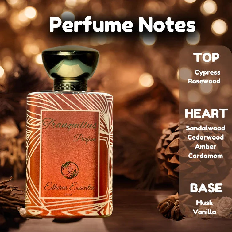 Tranquillus features an exquisite combination of carefully selected ingredients, including cypress, rosewood, sandalwood, amber, and white musk. Each component contributes to the fragrance's rich profile, creating a unique and captivating scent