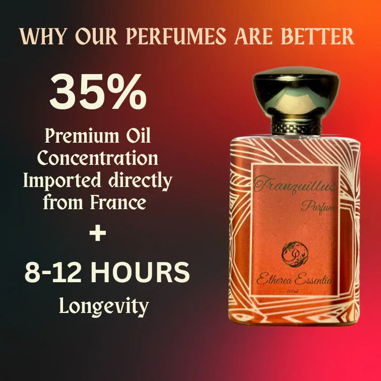 Tranquillus is distinguished by its high-quality ingredients, including a 30-40% pure oil concentrate, meticulous craftsmanship, and a luxurious scent profile that embodies sophistication and elegance, making it a true luxury fragrance